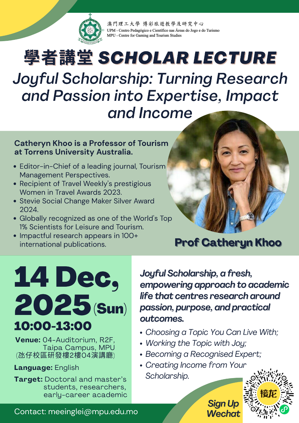 學術活動最新資訊 28 十一月 2025 學者講堂 Scholar Lecture “Joyful Scholarship: Turning Research and Passion into Expertise, Impact and Income” 列印 下一篇